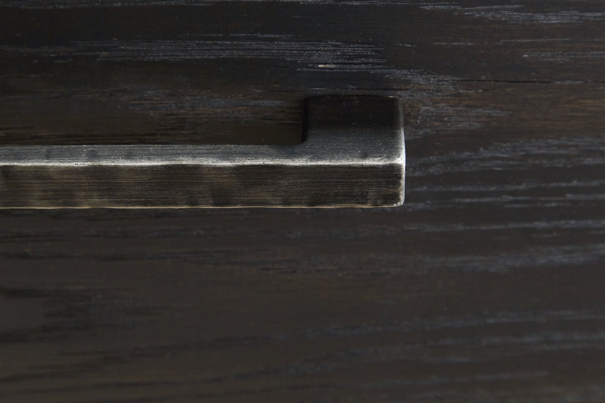 | Details | Made with hardwood solids and thick rustic oak veneer, Black finish with rubbed-through edges, Metal bar pulls with rustic texture in a dark pewter-tone finish, 2 cabinets with glass front doors, each with an adjustable shelf, 2 storage drawers, Cutouts for wire management, Minor assembly required, simply lay flat and attach feet | |