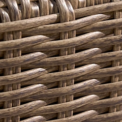 | Details | Includes 4 pieces: right-arm and left-arm facing loveseat, armless chair and curved corner chair, "Left-arm" and "right-arm" describe the position of the arm when you face the piece , All-weather resin wicker handwoven over rust-resistant aluminum frame with durable powder coated finish , Solution-dyed high-performance fabric , Nuvella is an outdoor fabric that can be cleaned and offers UV resistance , Foam cushion core wrapped in soft polyester , Clean fabric with mild soap and water, let air dry; for stubborn stains, use a solution of 4 oz. bleach to 28 oz. water , Stainless steel hardware , Designed to withstand the harsh elements of the outdoors , Assembly required | |