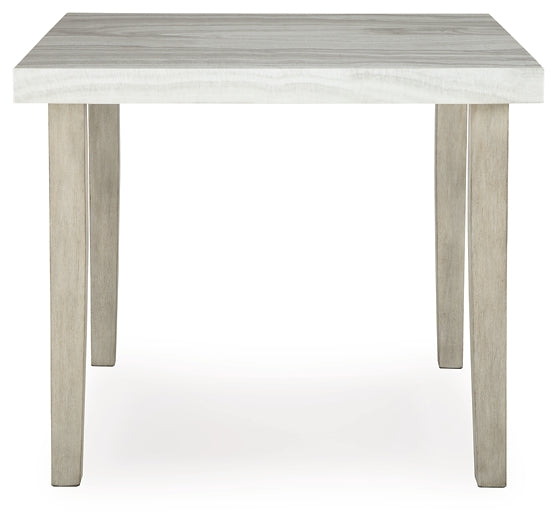 This counter height table reflects your highly contemporary point of view. Its faux marble tabletop is a feast for the senses—white contrasts with the light and dark gray veining to create an authentic feel. With room to seat four people in sleek style, this table is a delicious choice for an elegantly elevated dining nook.