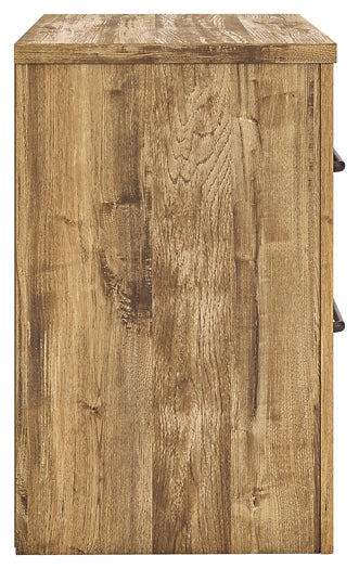 | Details | Made with engineered wood (MDF/particleboard/plywood) and decorative laminate for the right balance of affordability and durability, Golden rustic finish over replicated oak grain with authentic touch, Decorative laminate replicates natural or man-made material surfaces with consistent color, pattern and texture, Hardware with dark pewter-tone finish, 2 smooth-gliding drawers, Assembly required | |